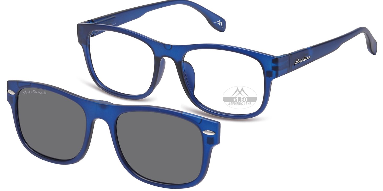 Montana Leesbril/zonnebril MRC1B + Clip-on Blauw is verkrijgbaar in de sterkte +1:00 tot en met +3:50.