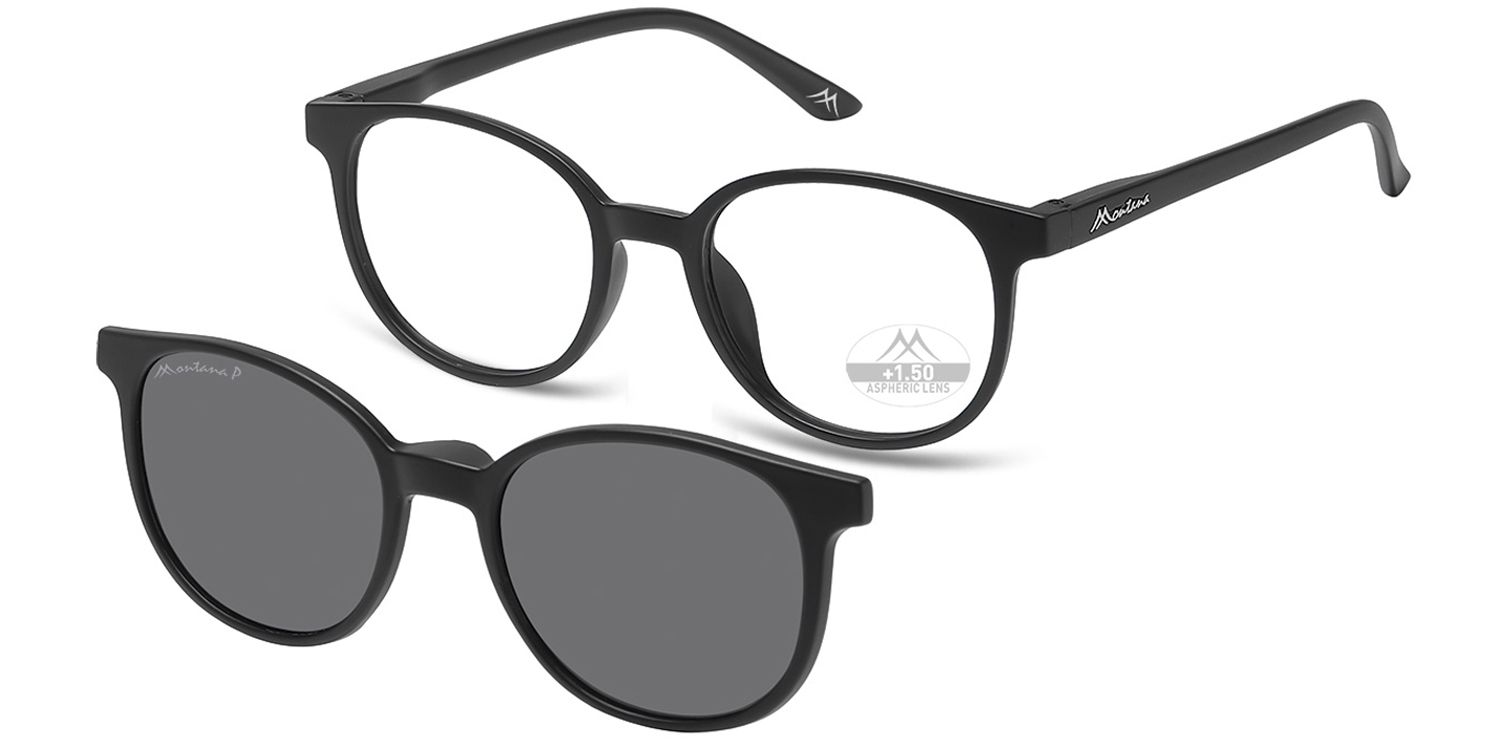 Montana Leesbril/zonnebril MRC2 + Clip-on Zwart is verkrijgbaar in de sterkte +1:00 tot en met +3:50.