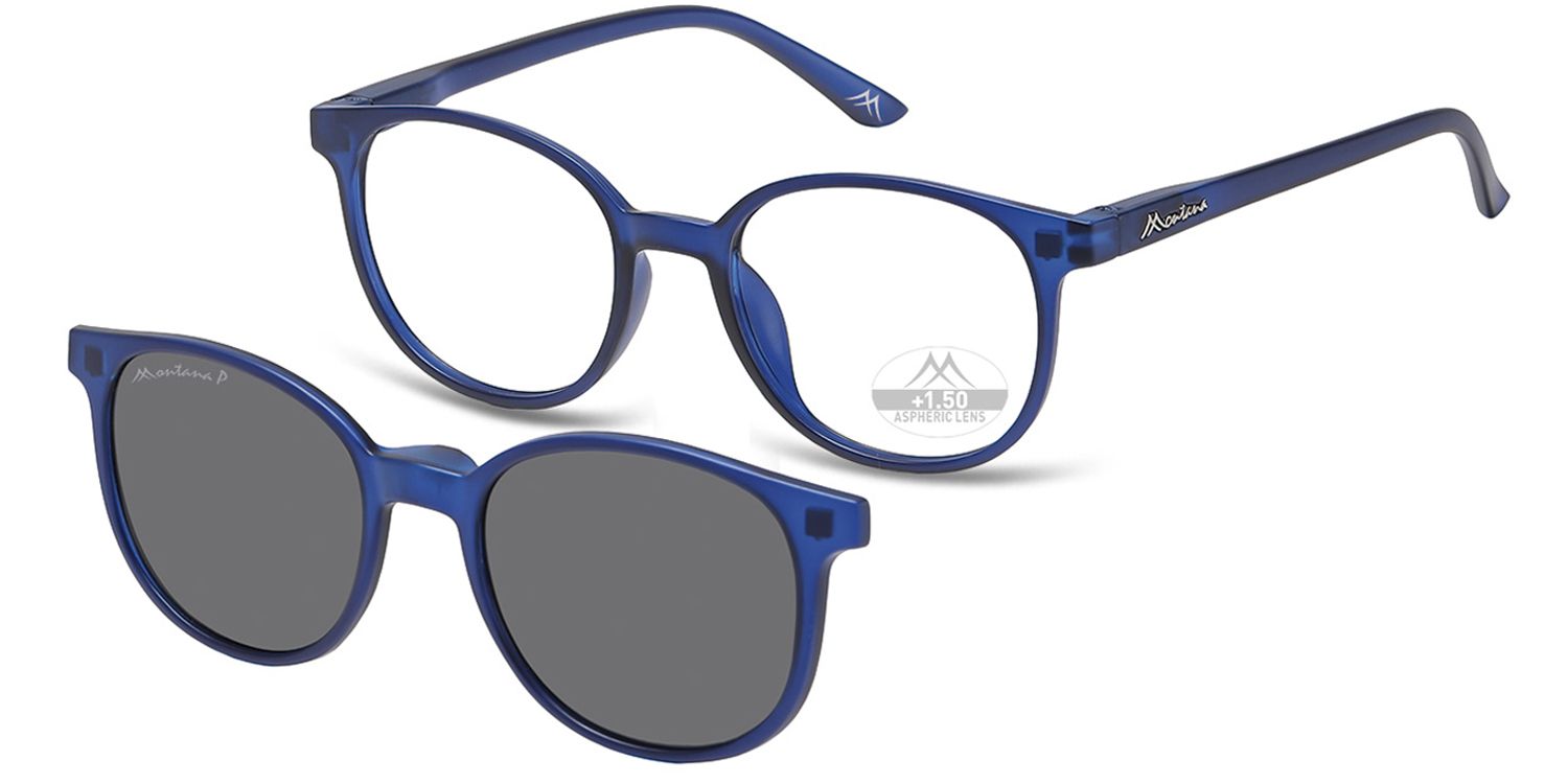 Montana Leesbril/zonnebril MRC2B + Clip-on Blauw is verkrijgbaar in de sterkte +1:00 tot en met +3:50.